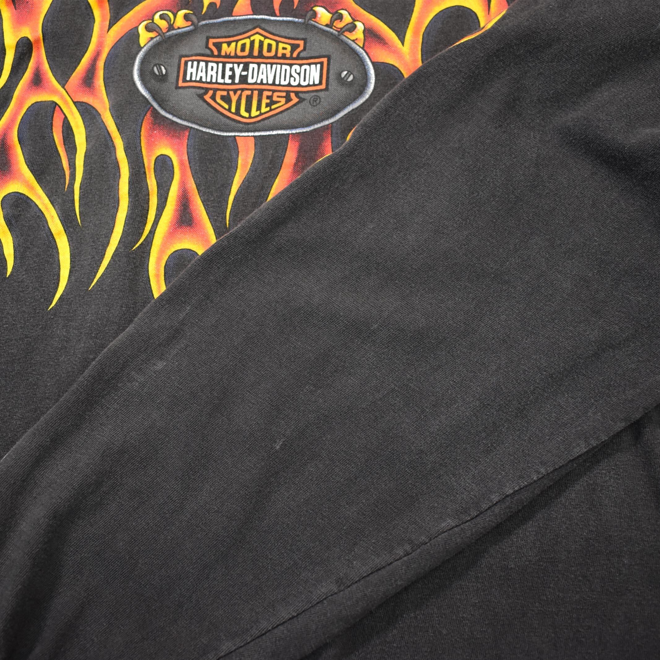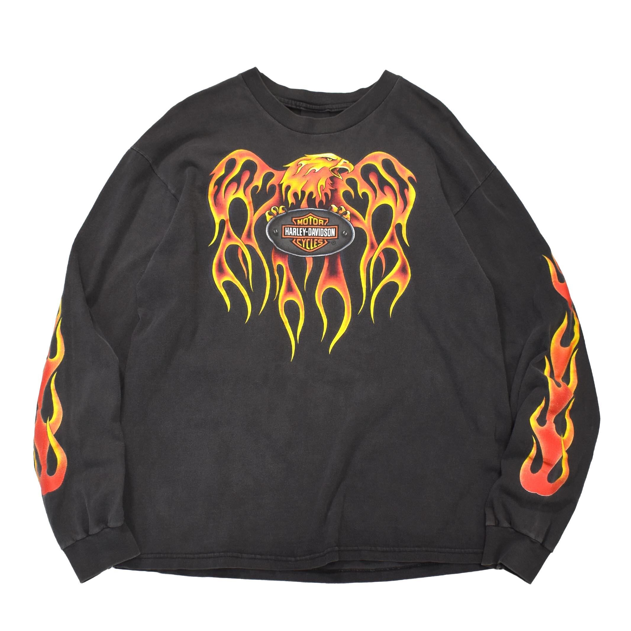 [L] 90's Harley Davidson Flame Printed L/S T-shirt Black