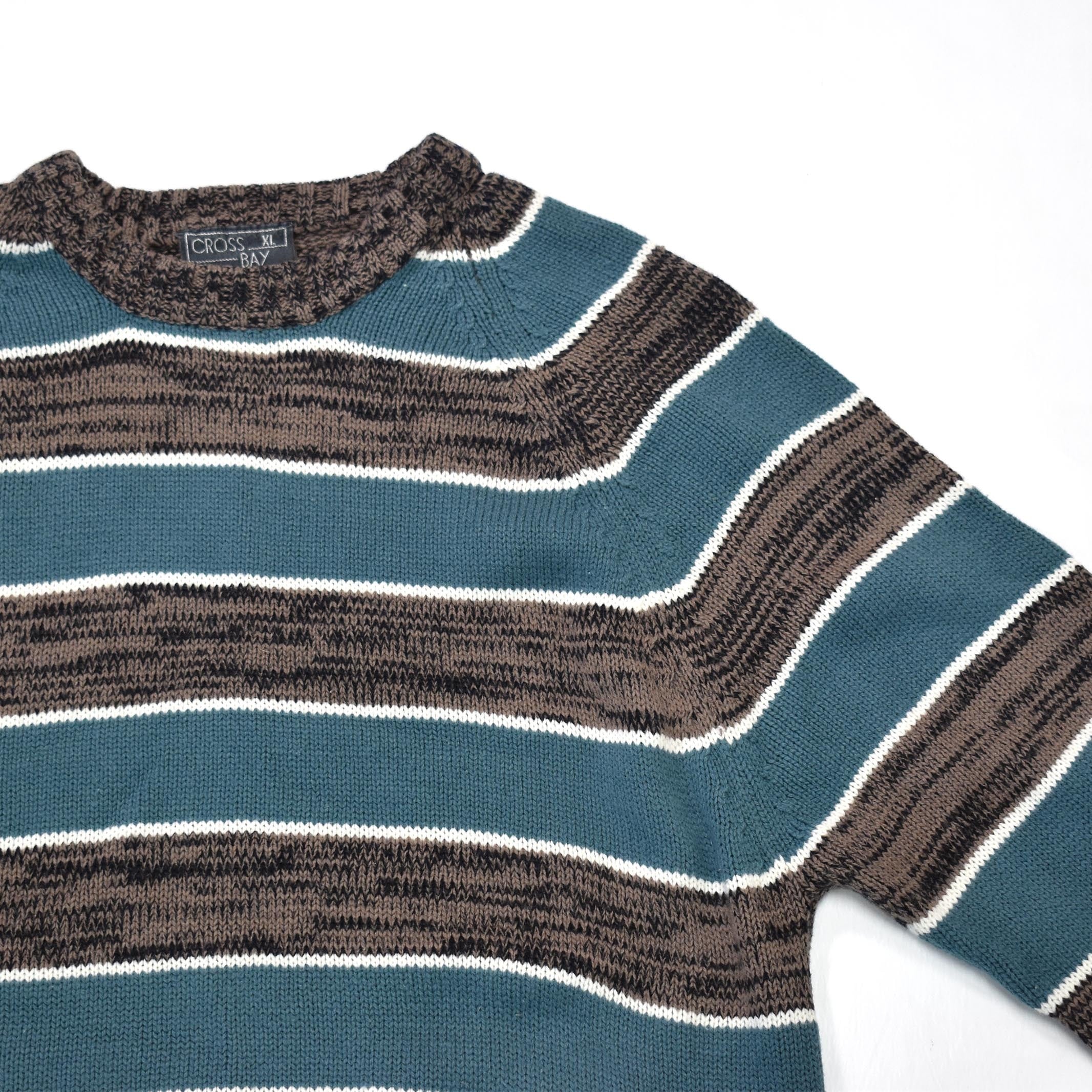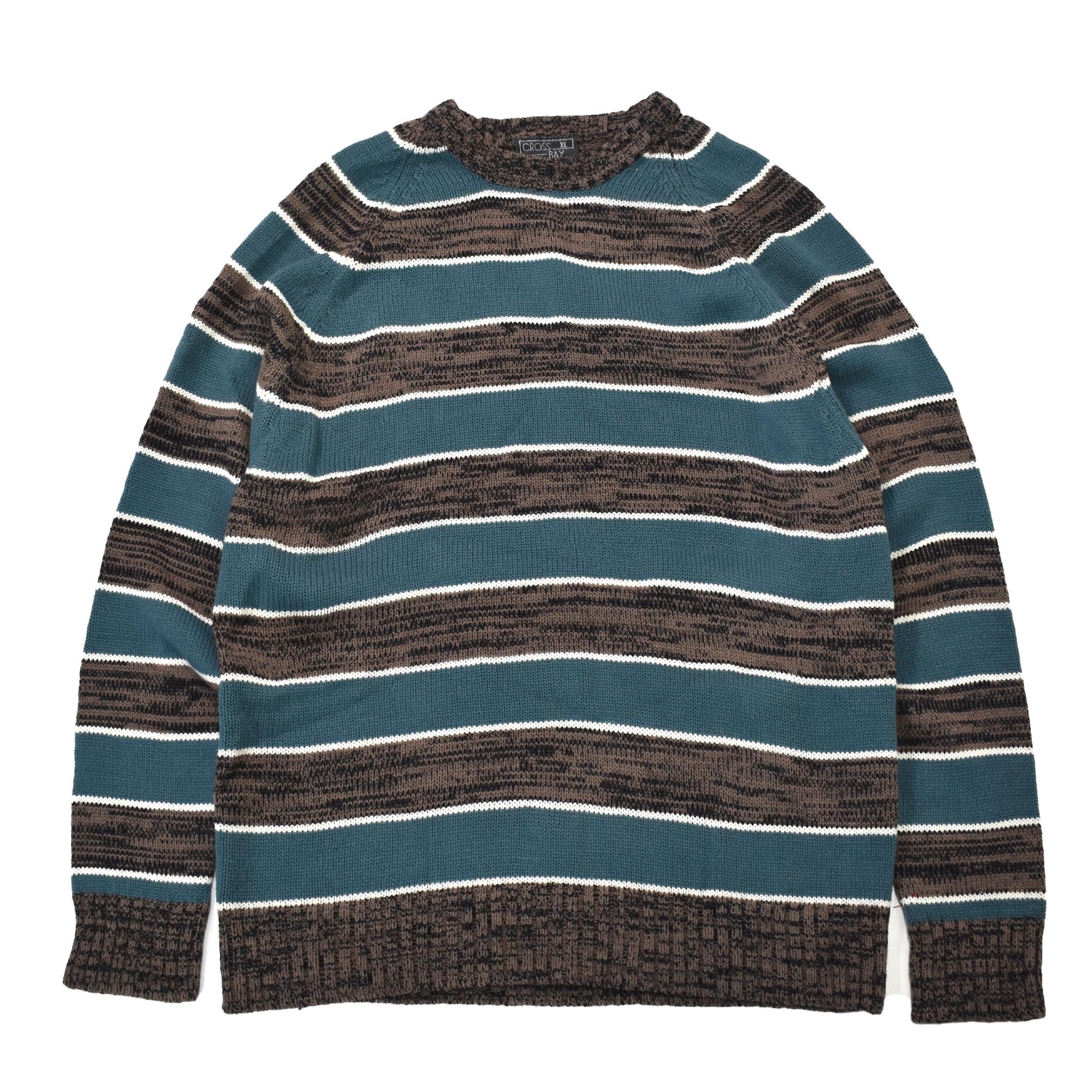 [XL] 80's Cross Bay Border Pattern Acrylic Sweater