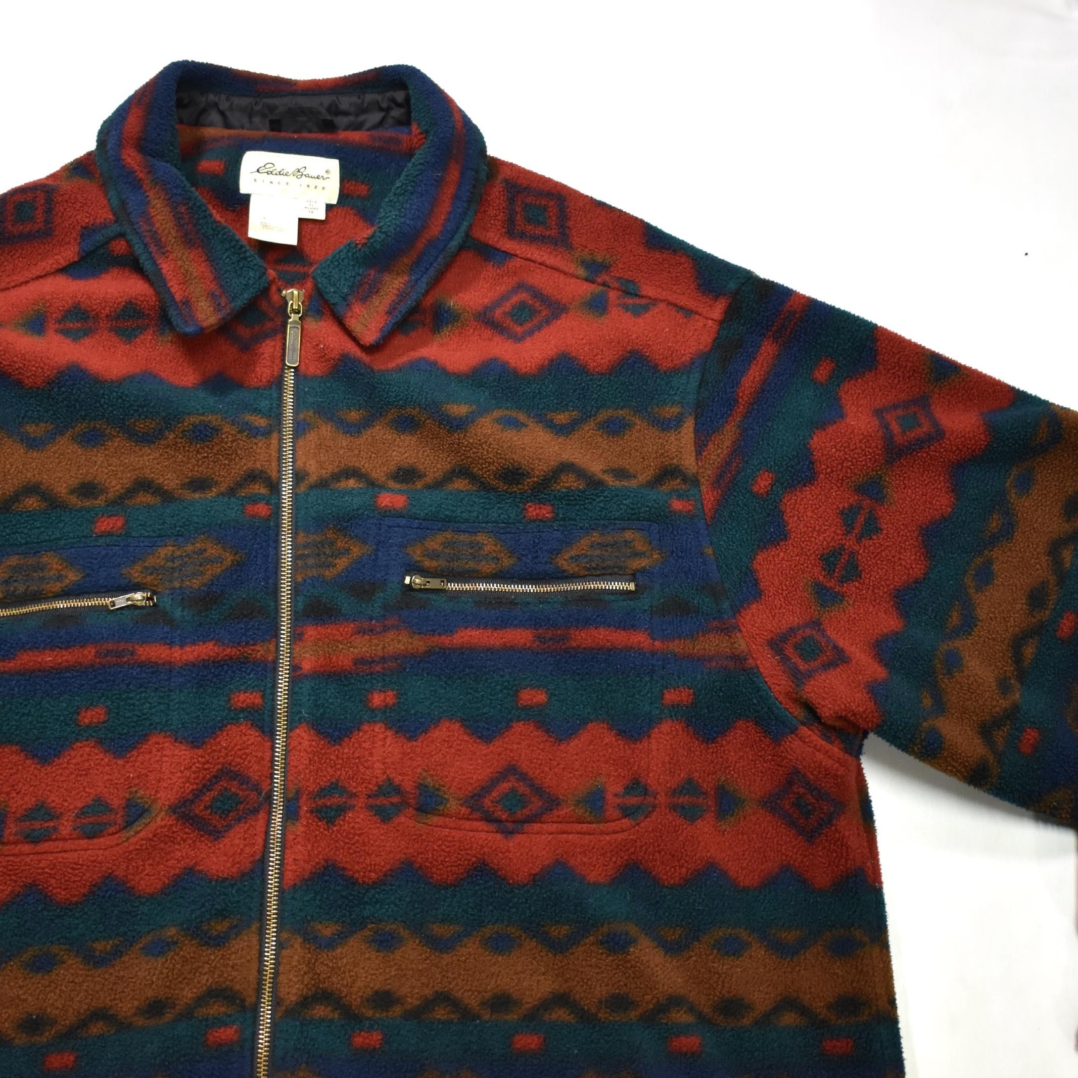 [XL] 90's Eddie Bauer Native Pattern Zip Up Fleece Shirt