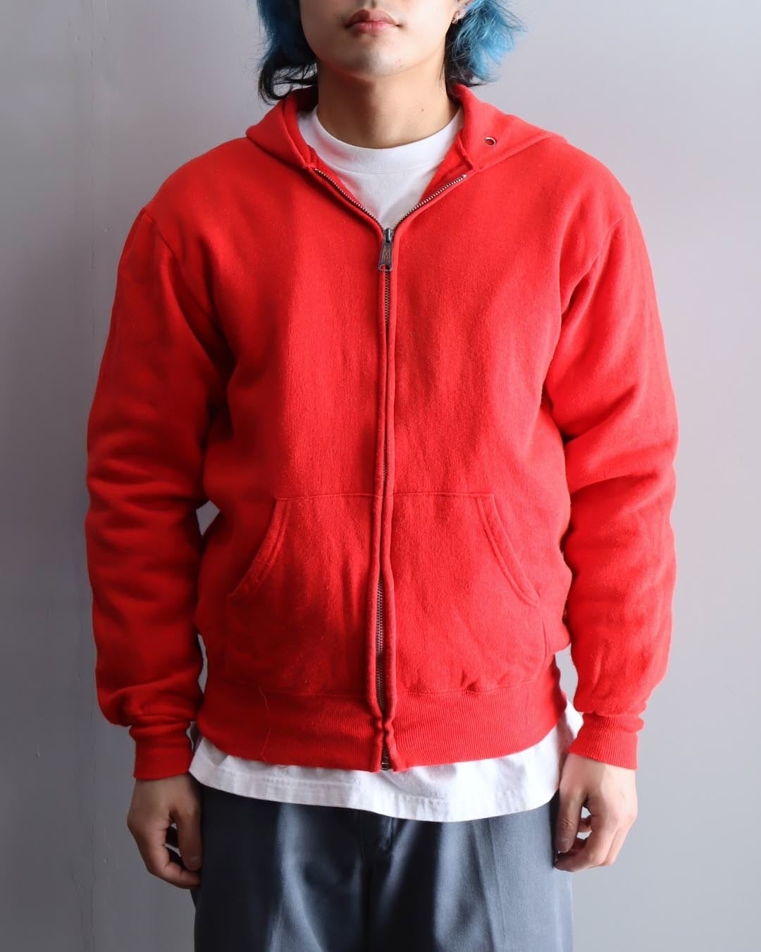 [M程度] 70's Vintage Zip Up Hooded Sweatshirt Red