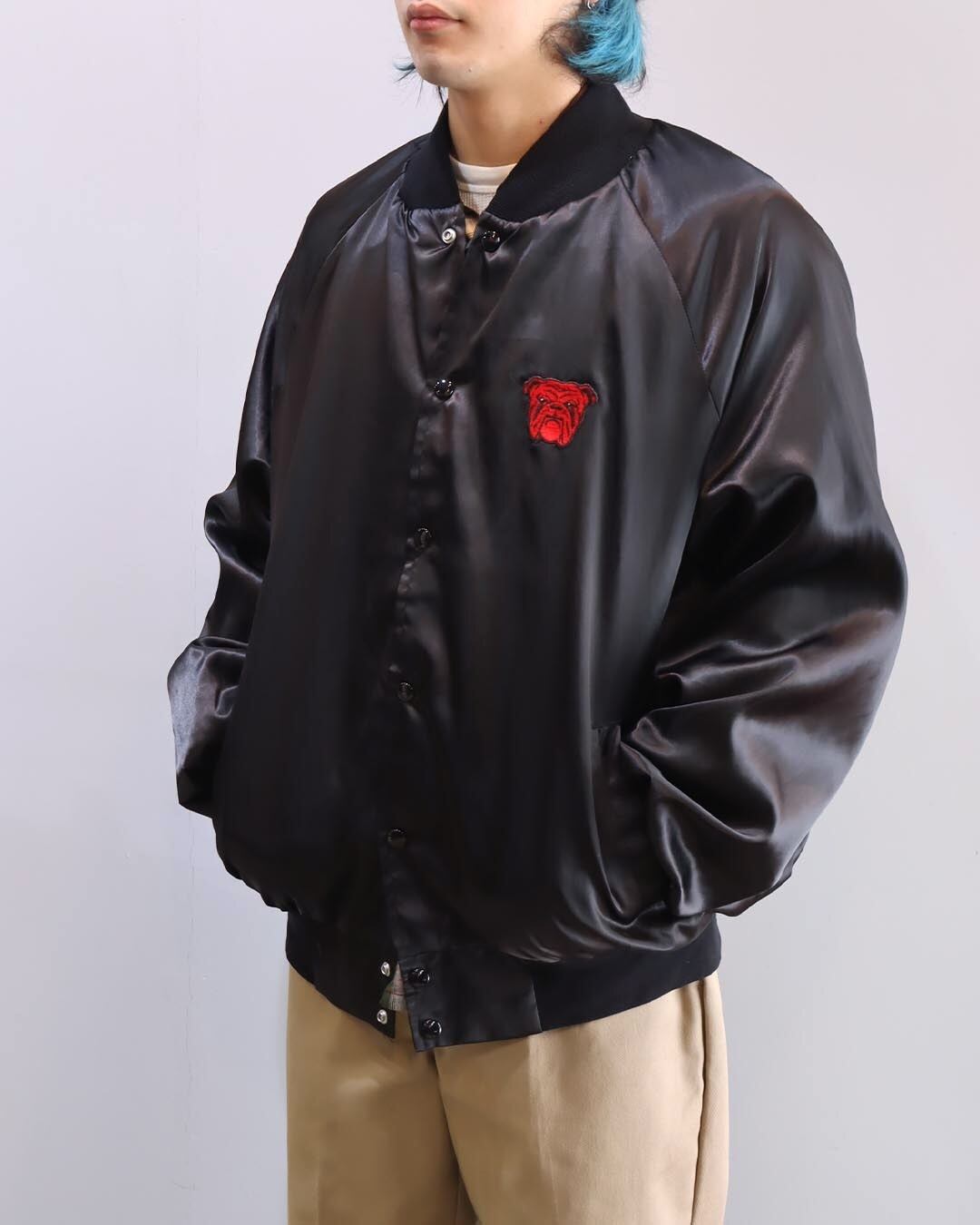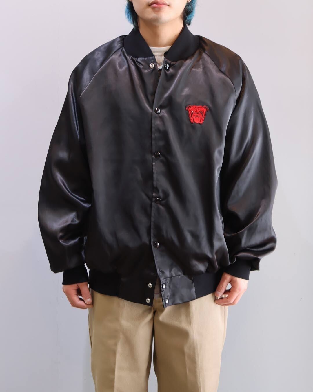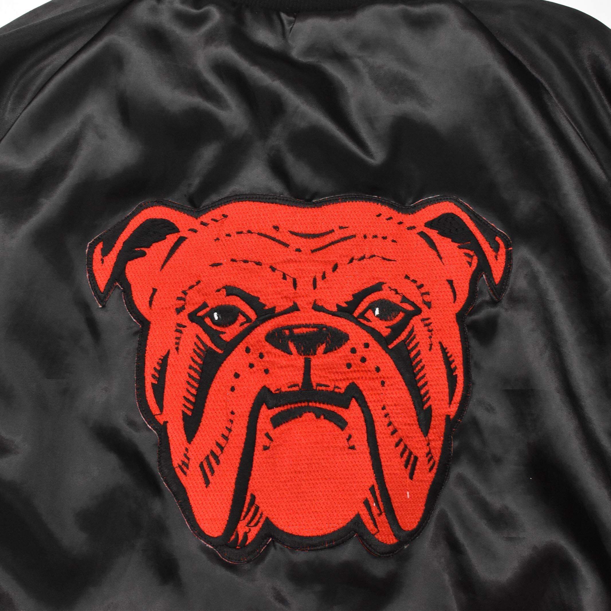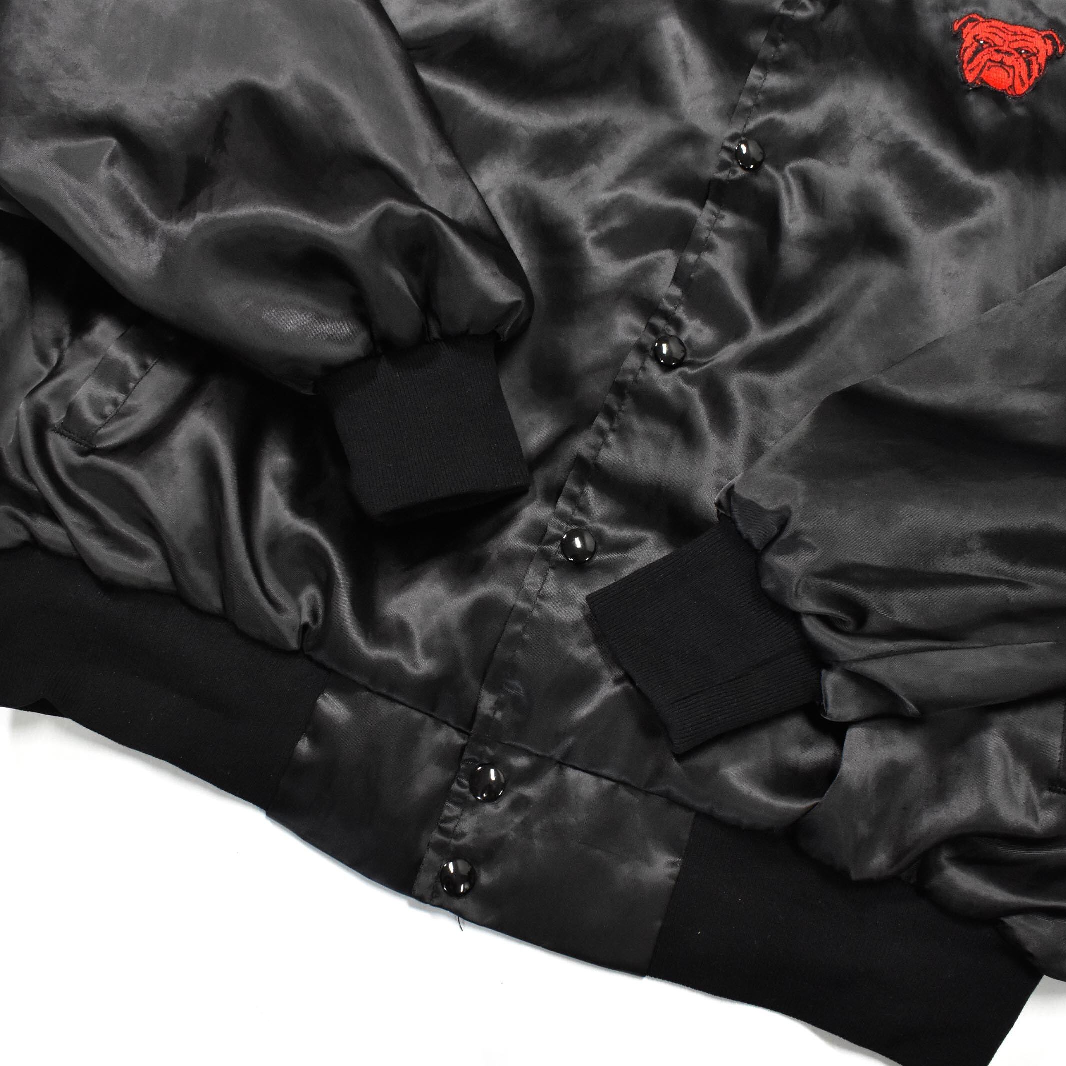 [2XL] 80's West Ark Bulldog Nylon Satin Varsity Jacket Black