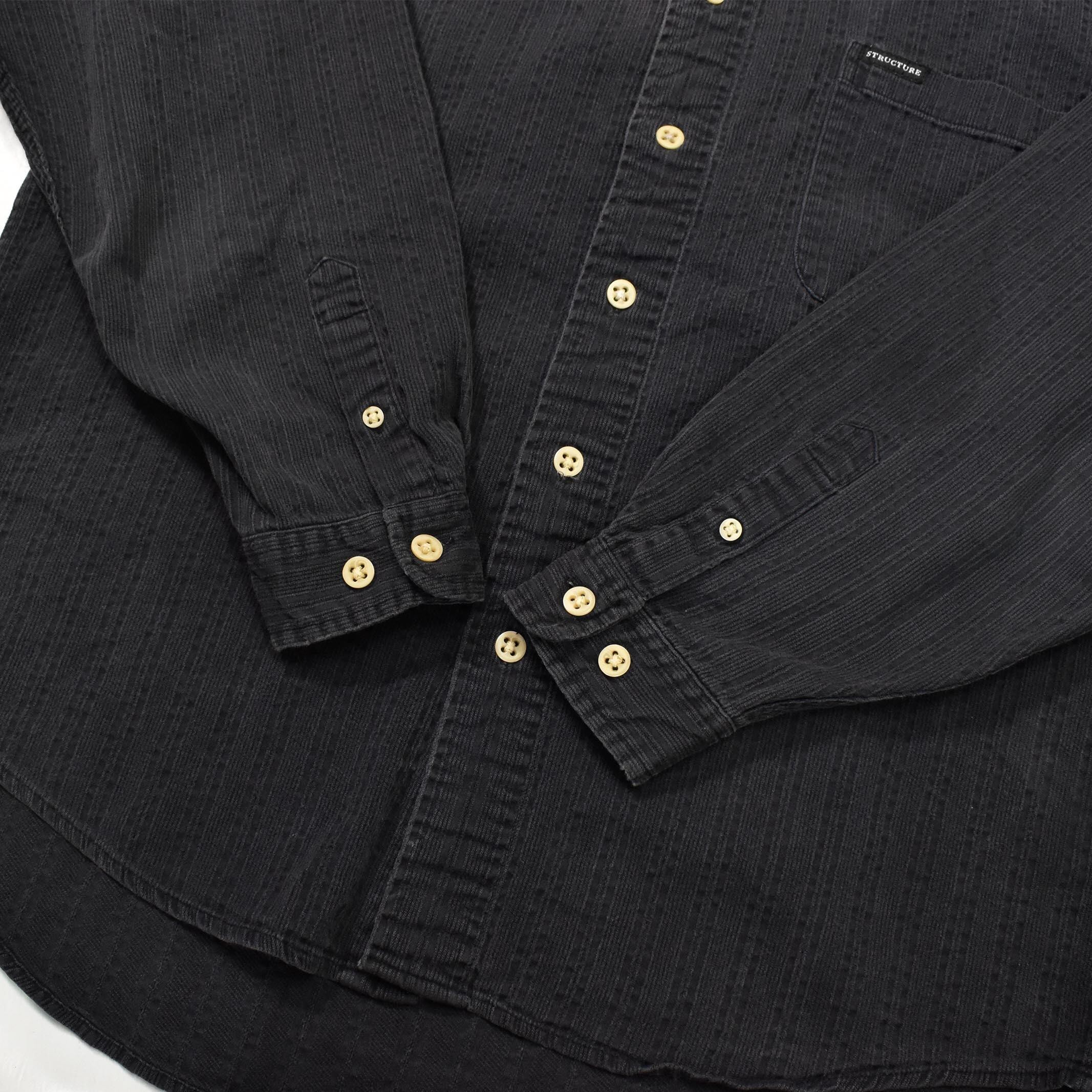 [M] 90-00's Structure Strupe Pattern Collarless Shirt Faded Black