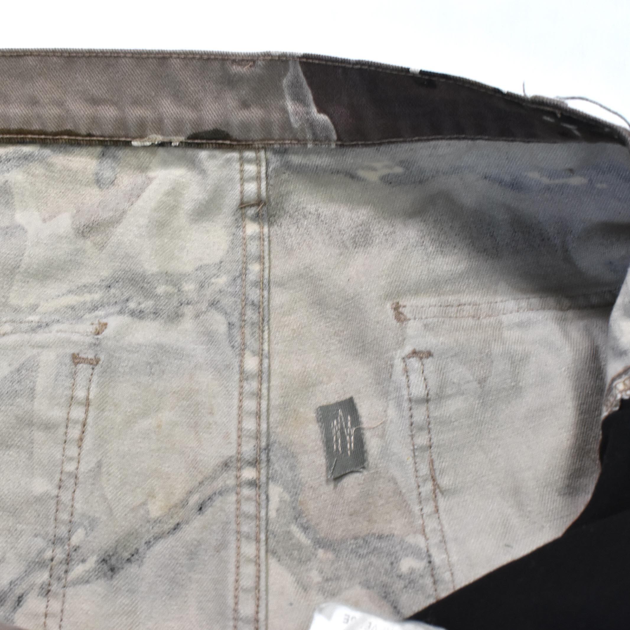 右膝に色抜け、左膝下、背面左ポケット右に茶色いシミ、
