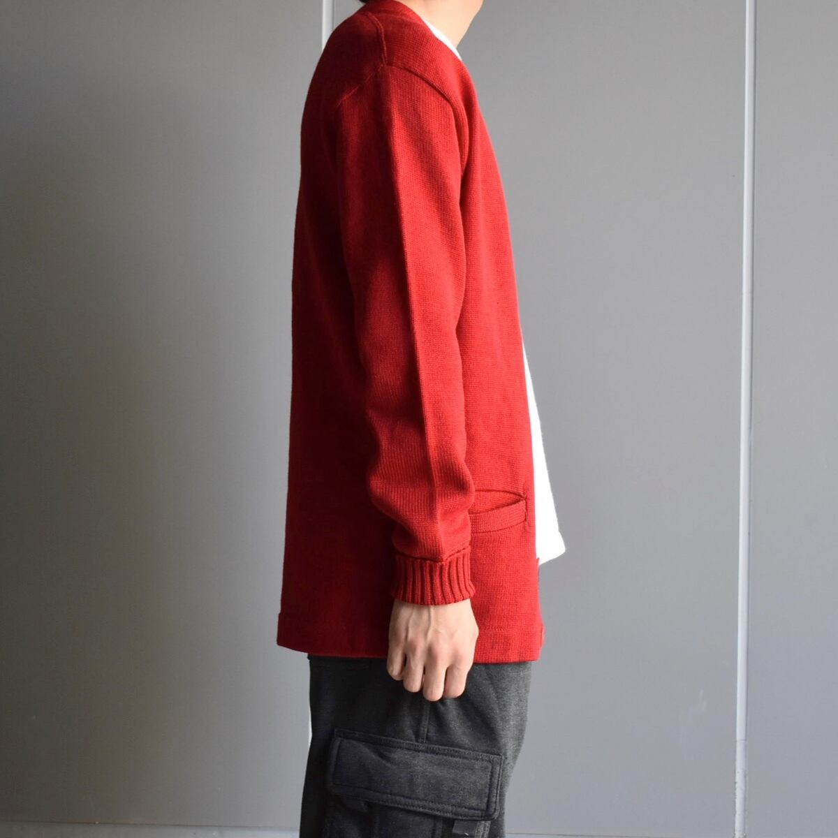 [L程度] 40's HOLMES Solid Wool Cardigan Red